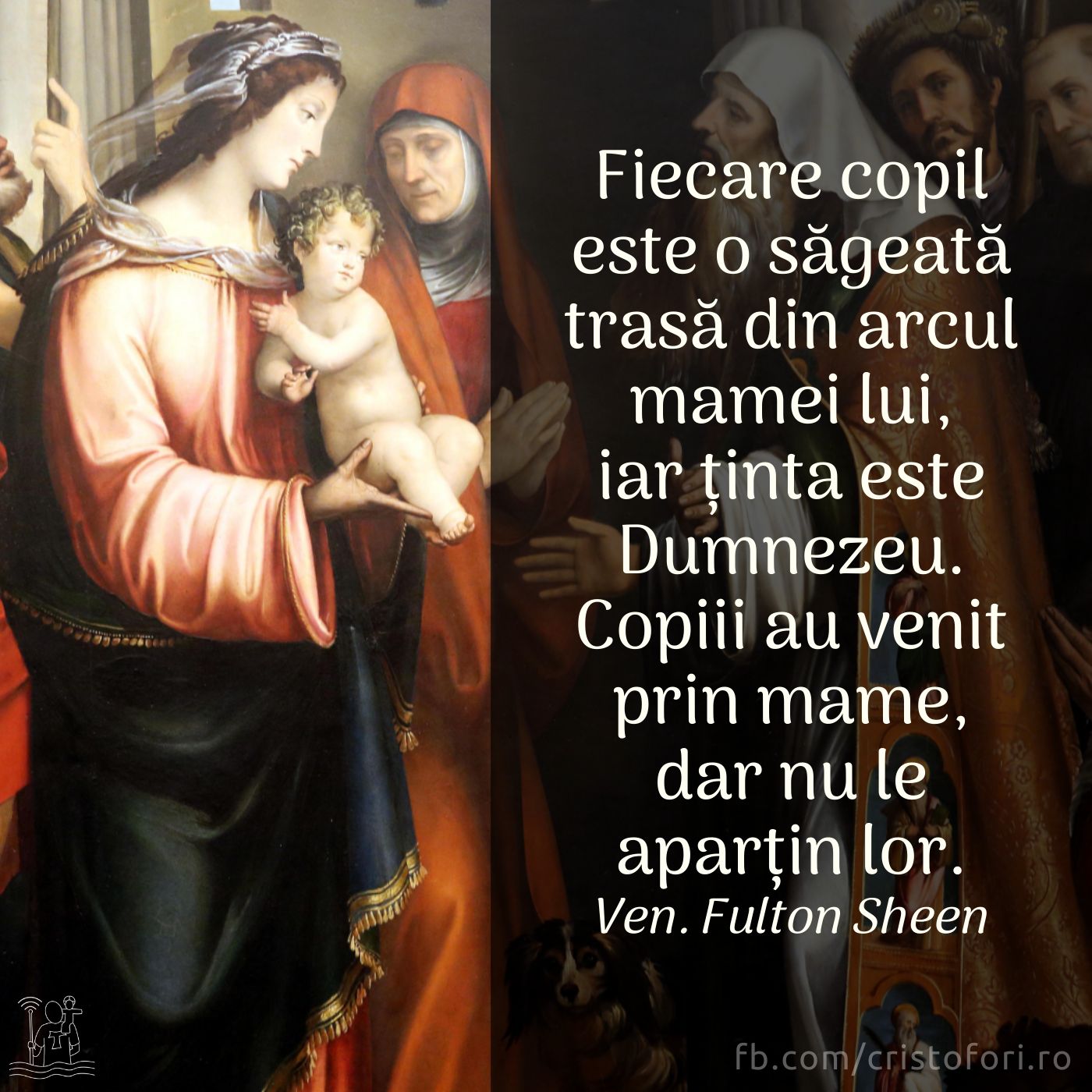 Ven. Fulton J. SheenFiecare copil este o săgeată trasă din arcul mamei lui, iar ținta este Dumnezeu. Copiii au venit prin mame, dar nu le aparțin lor.